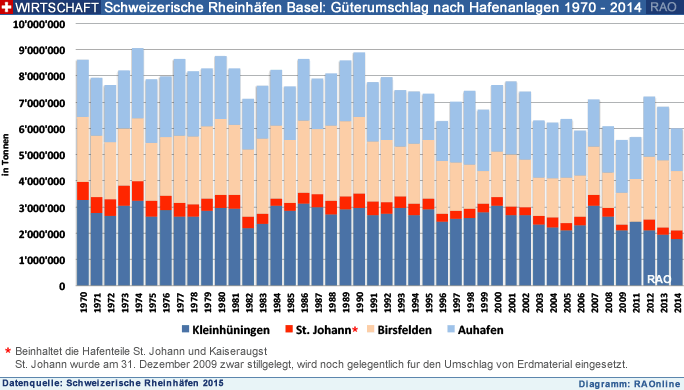Güterumschlag Schweizerische Rheinhäfen 1970-2014