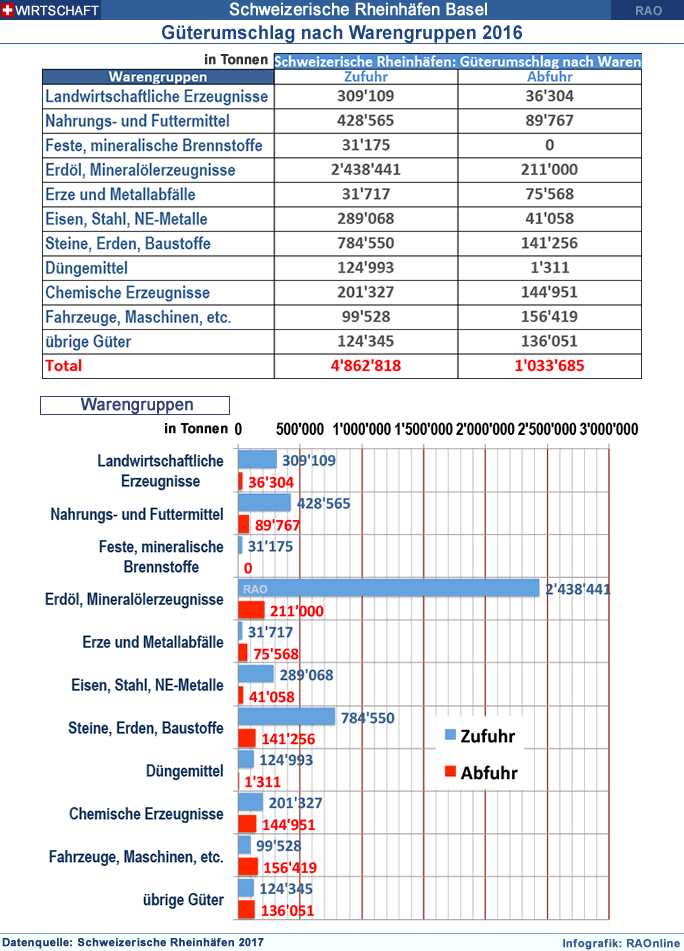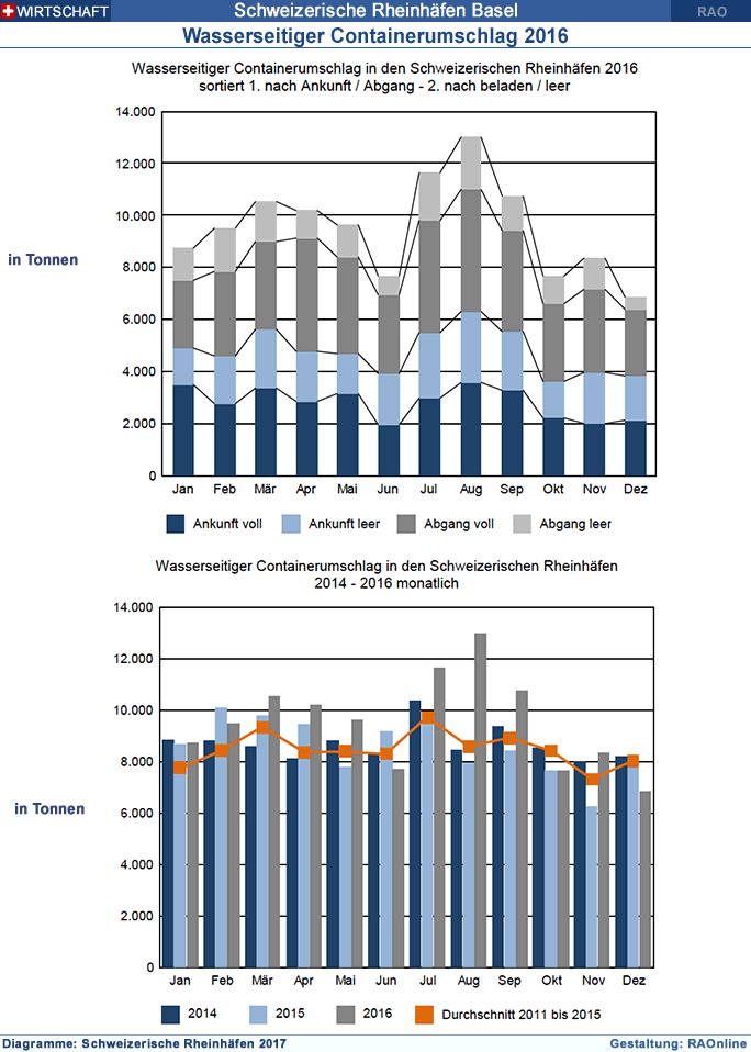 Güterumschlag Schweiz. Rheinhäfen 2016