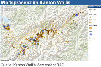 | Wolfsmonitoring im Kanton Wallis: Interaktive Karten |