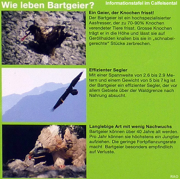 - Bartgeier zerkleinern grosse Knochenstücke, indem sie sie