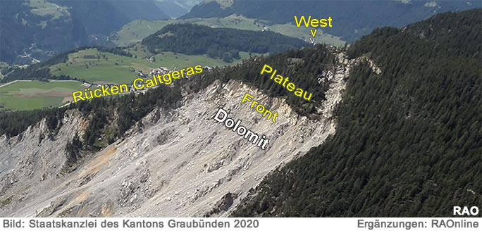 Die jüngere Aktivität in den steilen Hängen oberhalb von Brienz findet auf 1'600 m bis 2'000 m ü. M. statt, also weit unterhalb aktueller Permafrostregionen: Das Autauen des Permafrosts durch höhere mittlere Atmosphärentemperaturen ist hier also nicht der Auslöser. Das war beim grossen Ereignis am Piz Cengalo im Jahr 2017 im nahen Bergellgebiet vermutlich anders.