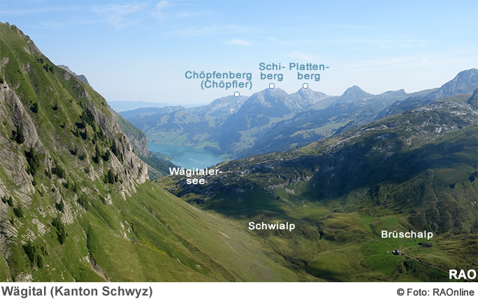 Das Wägital im Kanton Schwyz grenzt im Osten an den Kanton Glarus. ImOsten stossen das Glarner Niederurnen Tal, das Schwändital und das Oberseetal an das Schwyzer Wägital.