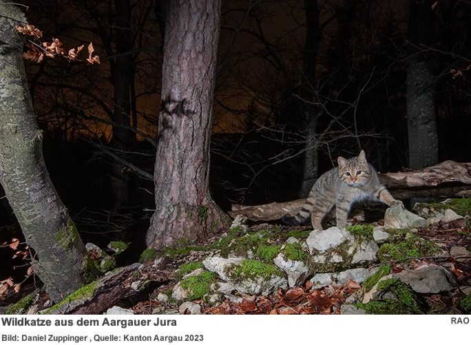 Erhebungen in den Jahren 2018 bis 2020 haben ergeben, dass der Aargauer Jura wieder fast flächendeckend von der Wildkatze besiedelt ist. Die zweitgrösste einheimische Katzenart teilt ihren Lebensraum heute vor allem mit der Hauskatze. Die grösste Gefahr für die Wildkatze geht von Hauskatzen aus, welche sich mit Wildkatzen paaren. Gerade jetzt, wo der grösste Teil des Wildkatzennachwuchses geboren wird, ist beim Auffinden von jungen Kätzchen in der Nähe des Waldes Vorsicht geboten.