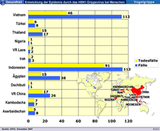 Ägypten, Aserbaidschan, Ausbreitung, China, Dschibuti, H5N1-Virus, Indonesien, Irak, Kambodscha, Laos, Nigeria, Thailand, Todefall, Türkei, Vietnam, Vogelgrippe