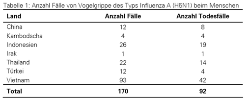 Influenza A (H5N1) - Aktueller Situationsbericht