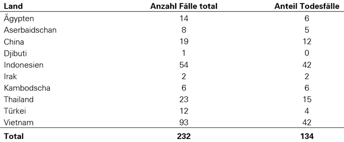 humanen Todesfall in Thailand bestätigt. Die letzte Infektion eines