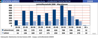 2008/09 Aargau: Frauenanteil - Durchschnittsalter der Lehrpersonen