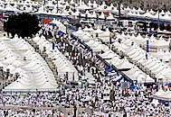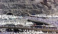 Auf dem Weg von Mina nach Arafat liegt Muzdalifa. In Muzdalifa ("Ort, an dem man liebenswürdig wird") müssen die Pilger im Korantext beschriebene Rituale ausführen. Die Rituale in Muzdalifa beginnen mit dem Verrichten den beiden letzten Tagesgebete. Haddschpilger haben das Recht, zwei der Pflichtgebete in einer Kurzform zusammenzufassen. In Muzdalifa werden auch 49 kleine Kieselsteine gesammelt, welche später in Mina nach einer genau festgelegten Zählweise gegen drei heilige Pfeiler geworfen werden. |