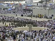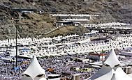 In der Ebene von Arafat befindet sich während des Haddschs das grösste Zeltlager der Welt. Am Rande der Ebene erhebt sich der Dschabal al-Rahma ("der Berg der Barmherzigkeit") , ein kleiner Hügel von dessen Spitze aus man die ganze Ebene überblicken kann. Auf dem Dschabal al-Rahma am Rande des Ta'if-Gebirges hat Mohammed seine letzte Predigt bei seiner "Abschiedswallfahrt" gehalten. Das Arafat-Ritual beginnt mit einer Zusammenfassung der beiden Mittagsgebete. Nach dem Sonnenuntergang verlassen die Pilger die Arafat-Ebene und strömen nach Mina zurück.