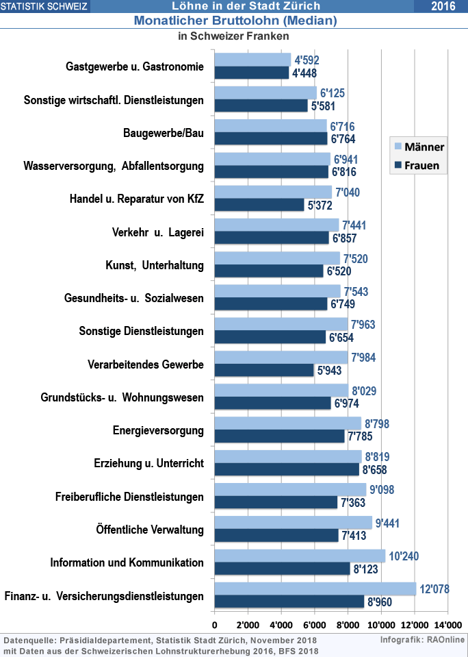 Um zwischen Vollzeit- und Teilzeitbeschäftigten vergleichen zu können, werden die erhobenen Beträge (inkl. Sozialabgaben) auf standardisierte Monatslöhne umgerechnet, das heisst auf eine einheitliche Arbeitszeit von 4 1/3 Wochen zu 40 Stunden. Dabei setzt sich der monatliche Bruttolohn aus folgenden Lohnkomponenten zusammen: Bruttoeinkommen des Monats Oktober (Sozialabgaben der Arbeitnehmenden, Sachleistungen, regelmässige Prämienzahlungen, Beteiligungen am Unternehmensumsatz und Provisionen inbegriffen) plus die Zulagen für Schichtarbeit sowie Sonntags- und Nachtarbeit, 1/12 des 13. Monatslohns und 1/12 der jährlichen Sonderzahlungen (Boni). Nicht berücksichtigt werden die Familien- und Kinderzulagen. |