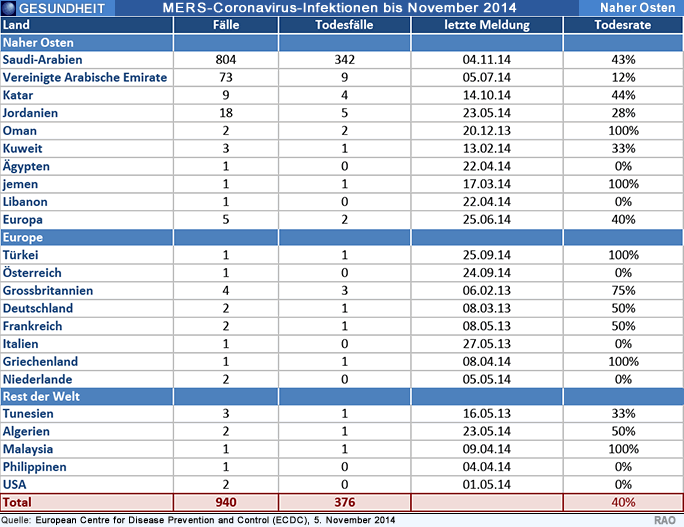 | Quellen: WHO, ECDC, November 2014, Text: RAOnline |