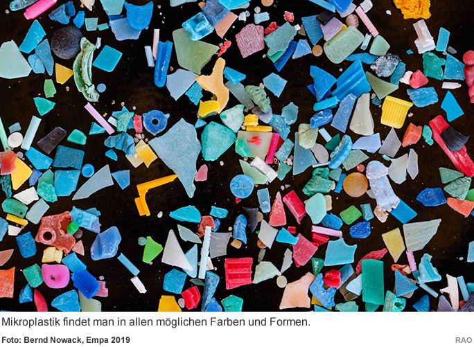 Kunststoffteile, die beim Zerfall grösserer Plastikteile in der Umwelt entstehen, z.B. durch Verwitterung oder mechanische Beanspruchung (sekundärer Mikroplastik). Quelle: empa 2019 |