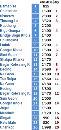 at Singati and climb up to Bigu and from there over Tinsang La (3319 m.)