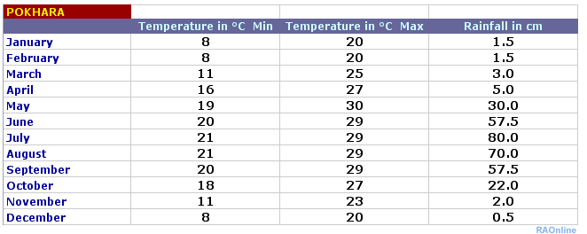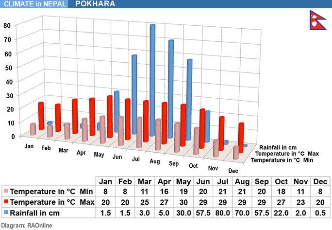 Climate in Nepal: Weather in Pokhara